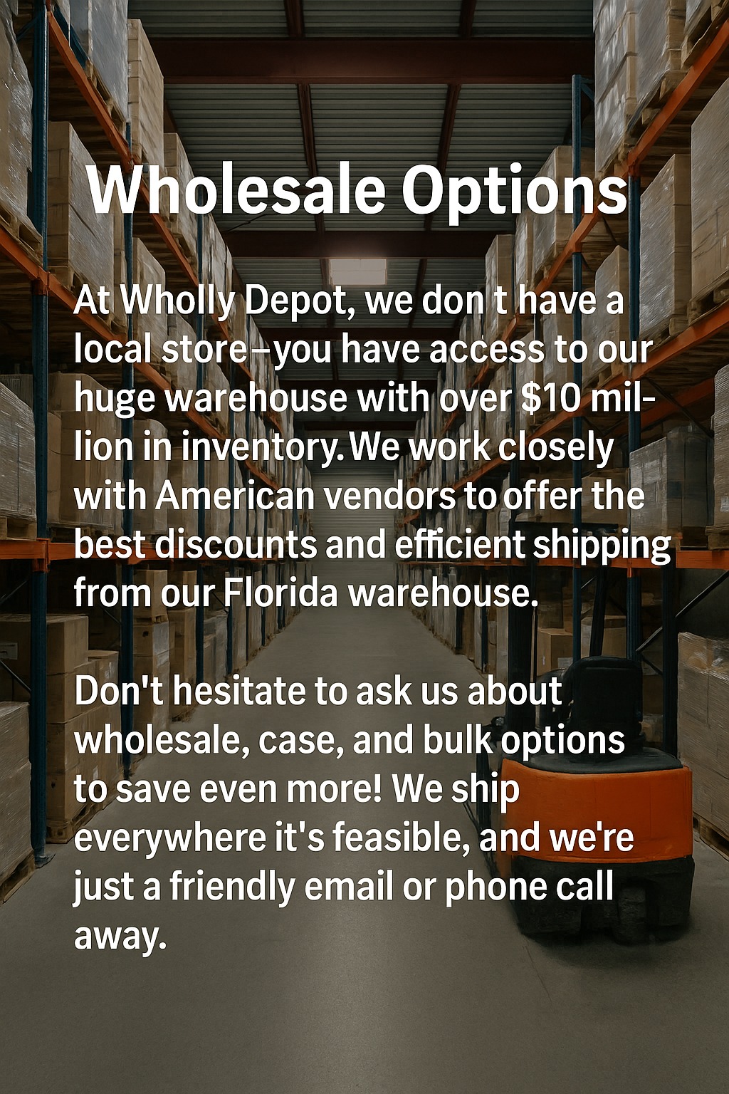 Shopping at Wholly Depot was an amazing experience! The website is easy to use, the products exceeded my expectations, and customer service was incredibly helpful. Super fast shipping — I’ll definitely shop here again!