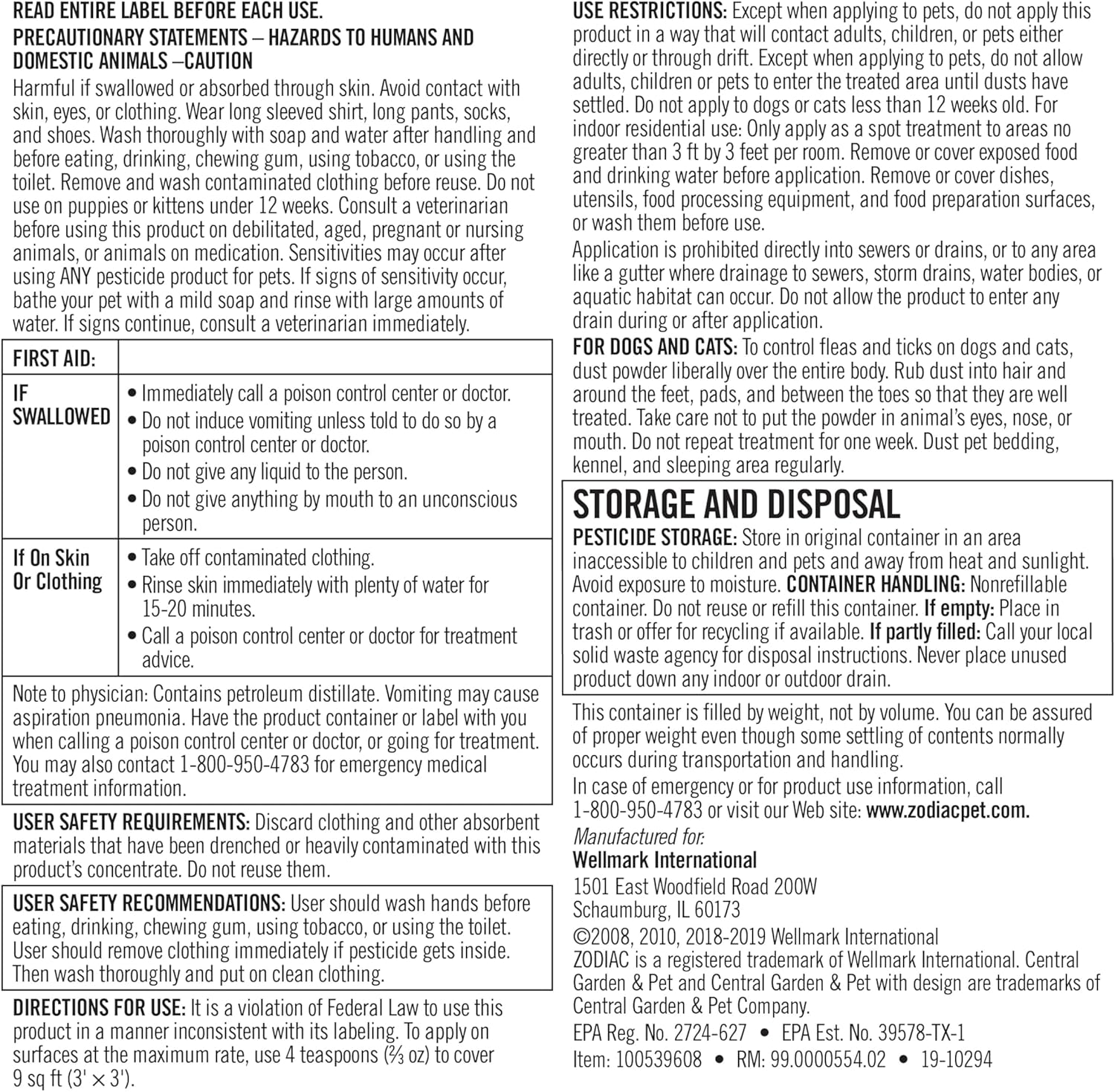 • 6 oz container (powder alternative to topical treatments) EPA Reg. 2724-627