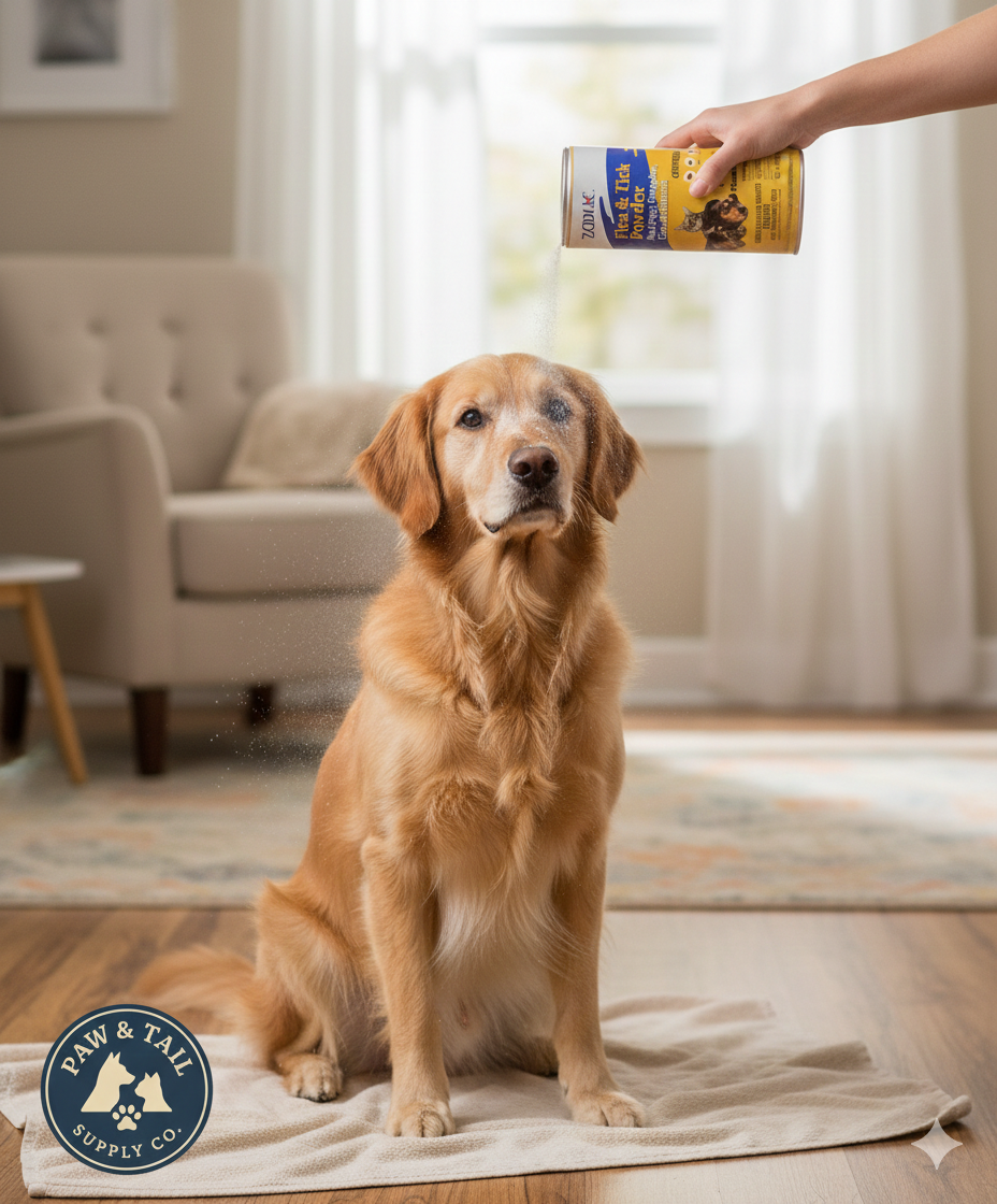 • Controls fleas, ticks, and lice with a dry powder application